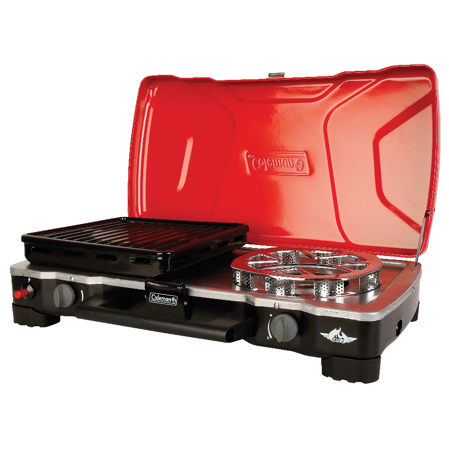 - Coleman FyreSergeant 2-Burner Grill Stove can operate as full size grill, grill/stove or 2 burner stove