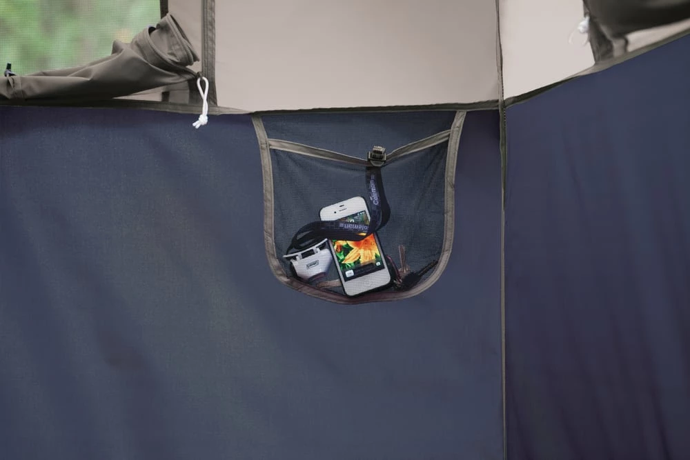 - Coleman Hampton Cabin Tent features a 2 room design with a hinge door