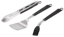 - Set includes: (1) 15.75″ (40 cm) basting brush, (1) 16.25″ (41.3 cm) locking tongs and (1) 18″ (45.7 cm) spatula