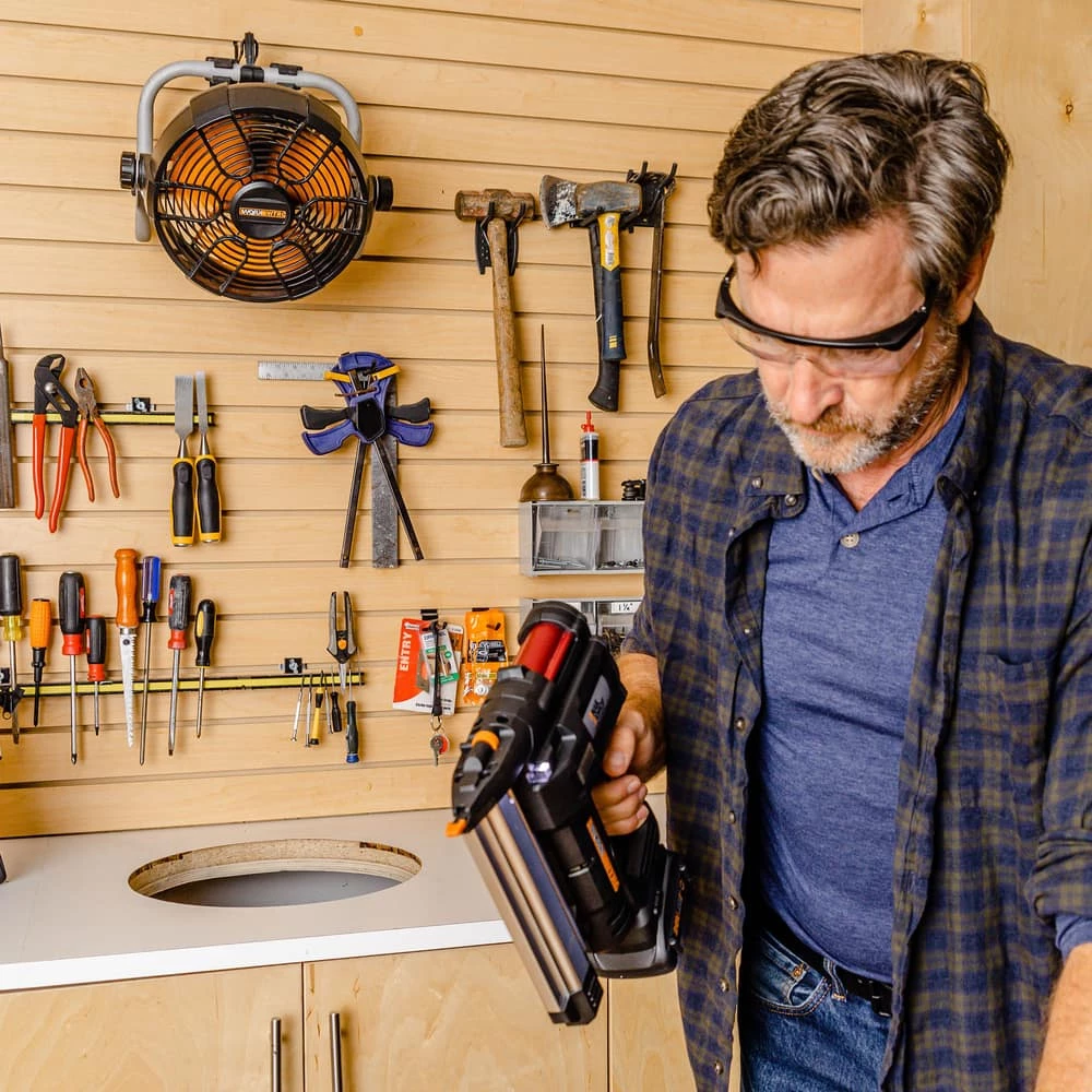 - WORX NITRO 20V 9″ Fan features two speeds (Low 0-1500, High 2500 RPM)